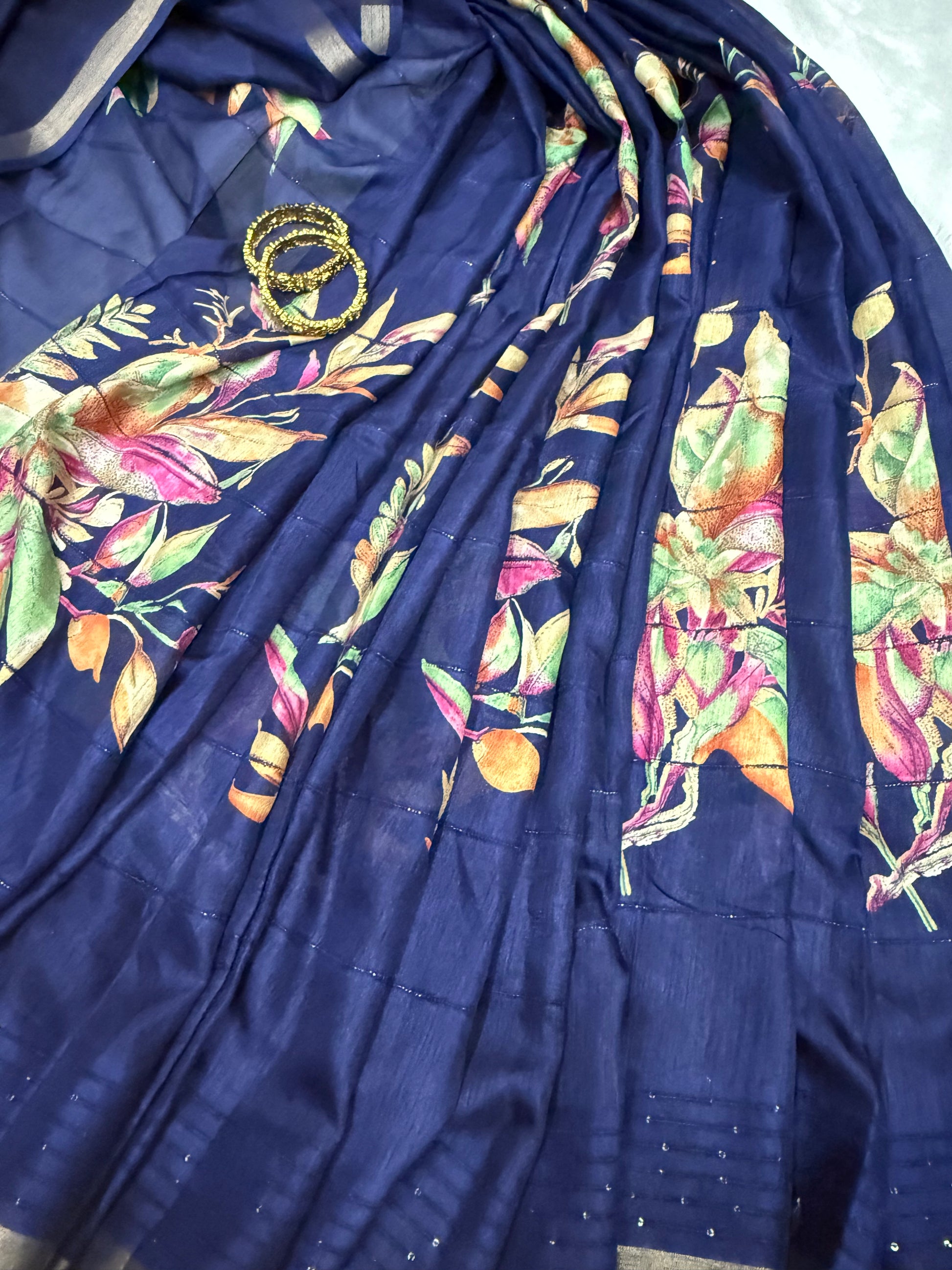 Elegant and easy to drape, this cotton blend soft silk saree comes with fancy tassels on the pallu and a matching running blouse. A perfect pick for everyday grace or special occasions.