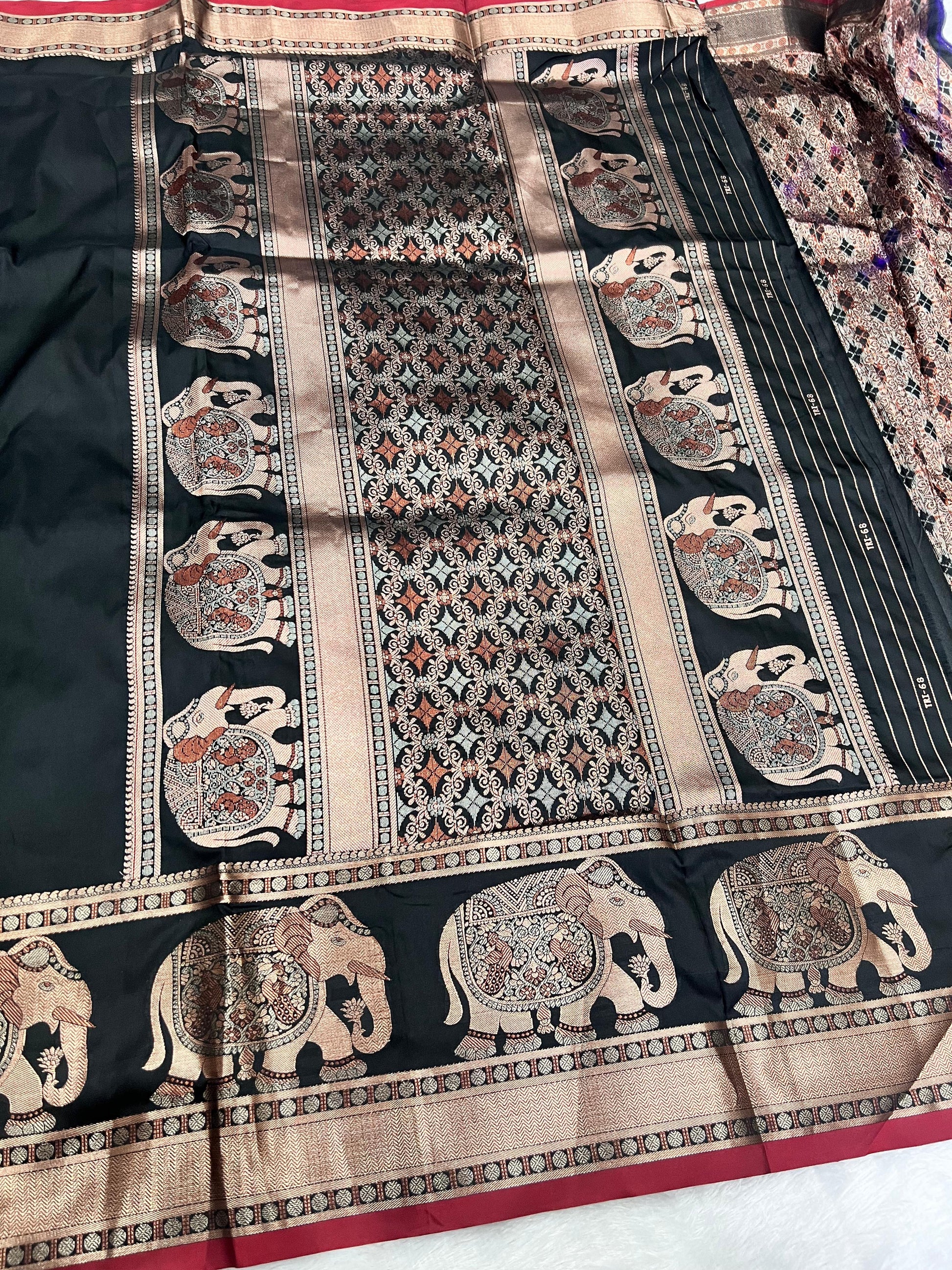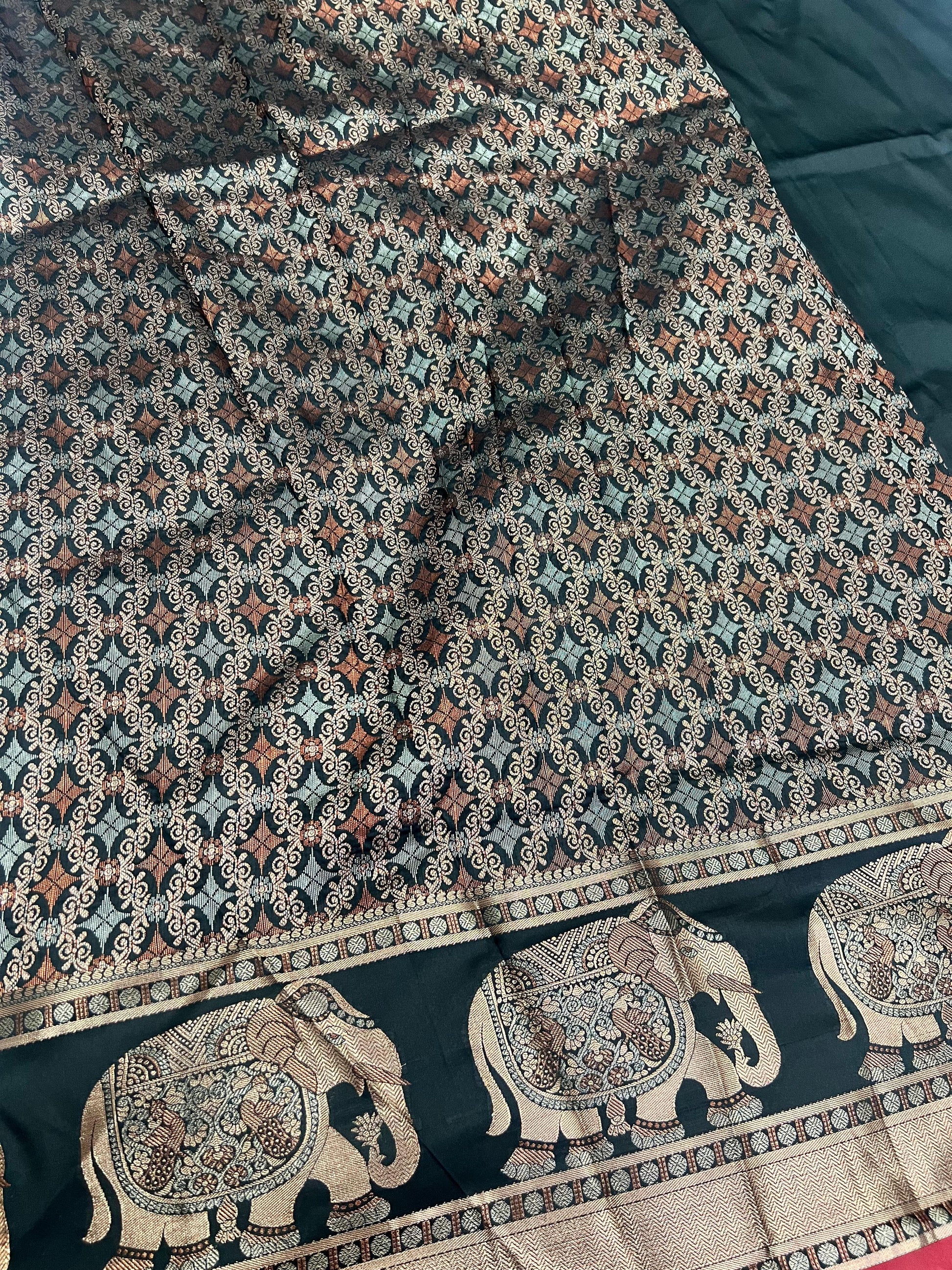 Banarasi - Elephant design on border & pallu with rich copper zari weaving